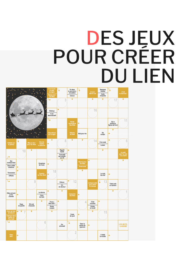 Si les jeux de lettres ont un tel succès auprès des lecteurs, c’est parce qu’ils allient culture générale et second degré. Pour le cruciverbiste, c’est le loisir idéal pour se faire plaisir tout en enrichissant ses connaissances sur divers sujets. C’est pourquoi les jeux de lettres sont un si bon outil de communication : ils ont la capacité de capter l’attention du lecteur et d’entrer en contact avec lui pour mieux lui transmettre l’information que vous aurez choisi d’insérer au cœur de la grille.